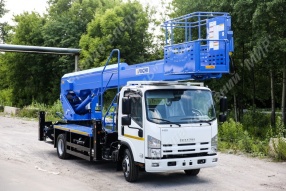 У данной модели вылет телескопической стрелы до 22 метров, что позволяет в равной степени проводить как установочные, так и спасательные работы. Коленчатый тип конструкции автовышки отличается своей маневренностью.
